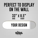 8.5" Skateboard Deck. Made from high-quality outdoor vinyl. These wraps are durable. Does not include the wall mounts, wheels or grip tape.