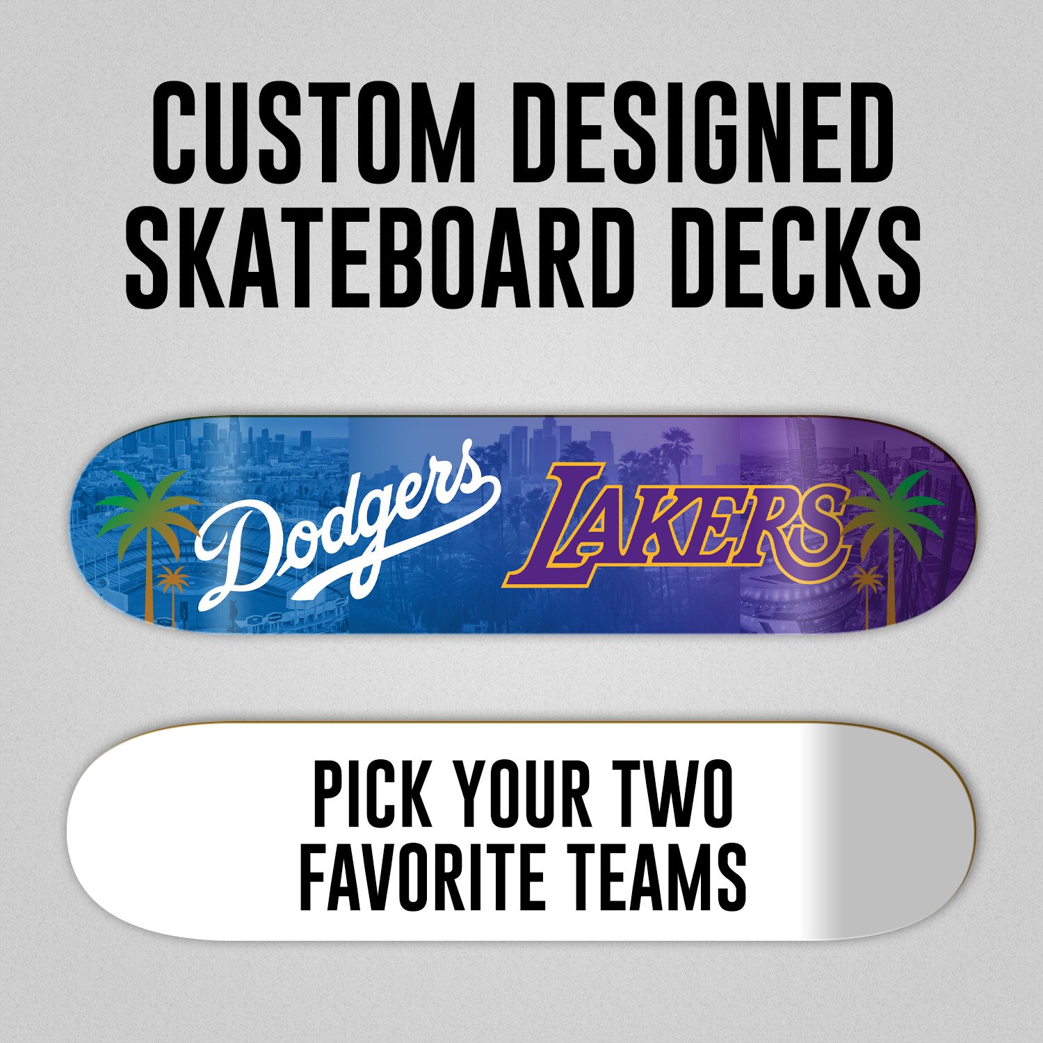 This product is made-to-order. Let us know which two teams you'd like on the skateboard deck. Send us an email at [email protected].