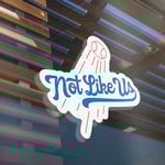 "Not Like Us". Durable vinyl that protects your stickers from scratches, water & sunlight. Stick on your laptop, phone case, water bottle, binder or notebook.